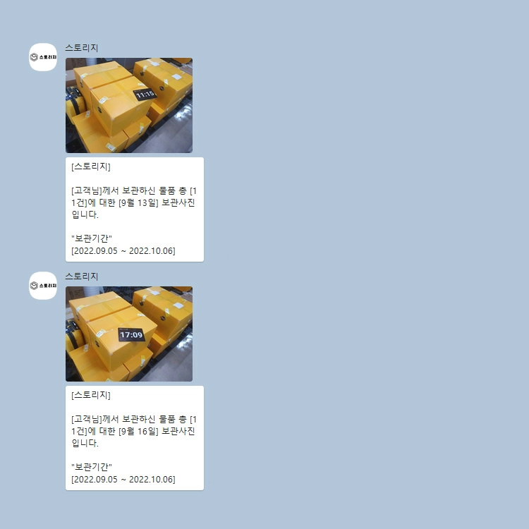 ※ 보관 물품에 대한 현황 및 사진은 카카오톡 상담톡으로 제공됩니다.